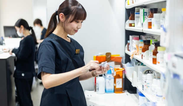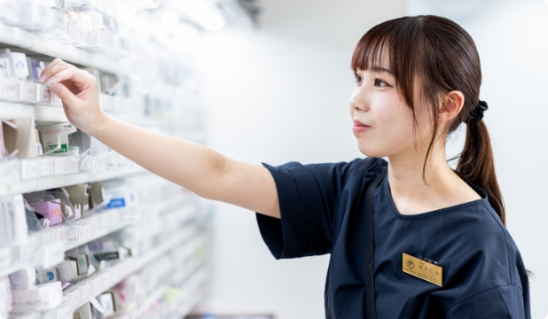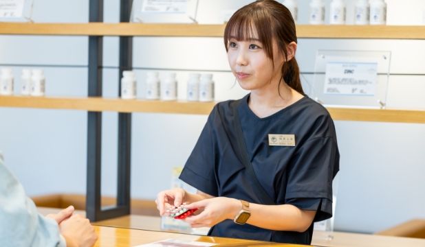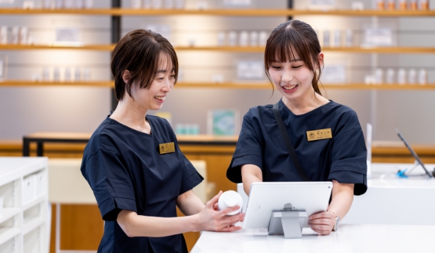 店舗の雰囲気はとても明るく、スタッフ間のコミュニケーションも活発です。情報共有もしっかりしており、わからないことがあればすぐに相談できる温かい環境です。先輩方もとても優しく、一つひとつ丁寧に教えてくださるので、毎日安心して働くことができています。また、患者さまと会話する機会も多く、体調のことはもちろん、ちょっとした日常の話もできるような距離感がとても心地よく、働きやすい職場だと感じています。